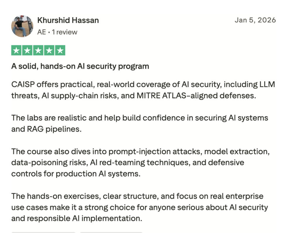 If you are building or breaking models, you need technical depth. Skip the theory-heavy certs. The Certified AI Security Professional (CAISP) helps professionals to build and secure pipelines and understand adversarial attacks at the code level. This is for security engineers who need to prove they can fix the vulnerabilities they find.
